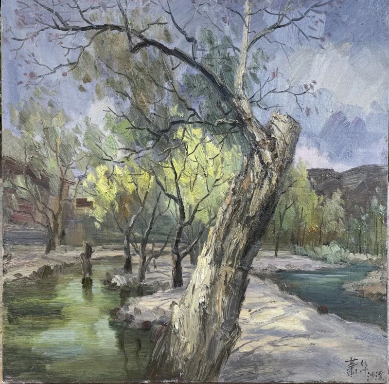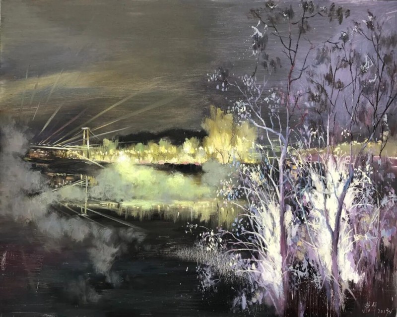 现场这个词原指事件和行为发生的地点,之所以引用“现场”二字,是指萧华近两年的风景油画作品所体现出来的现场感受是很直观的,而这种画面的现场感不是照搬抄袭、更不是胡乱编造,而是在写生或创作过程中把面对大自然的不同的时间、地点、感受、用不同色彩、构成与技法淋漓尽致的展现在画面之中。