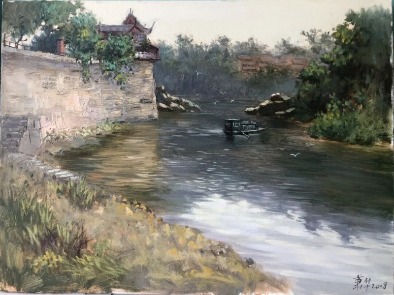 但是市场上的成功并不代表艺术家作品的成功,因为作品一旦市场化,必将进入套路、复制和概念化!萧华不愿意这样画下去,所以在2015年后,开始背着画箱,长途跋涉,游走于国内国外各风景名胜、田野乡间进行写生创作,除了参加国内写生协会组织的写生活动,各种国内名家交流写生活动,还在2016年参加中俄艺术家写生活动,不断碰撞、不断否定、不断完善和提高。从单一的室内创作到多元化的室外写生。但是萧华风景油画没有被五花八门的风格影响,而是坚持初心、坚持在写实和写意之间游走,所以萧华油画作品所展示的现场感受是十分直接的。他的作品同样用美学法则去经营画面,构图、色彩、构成,技法都是主观的,景物是客观的,这也体现了对大自然的敬畏之心。色彩因画而生,技法因景而变,感受随心而动,萧华用他多变得技法不断诠释着各种景物的精彩之处。