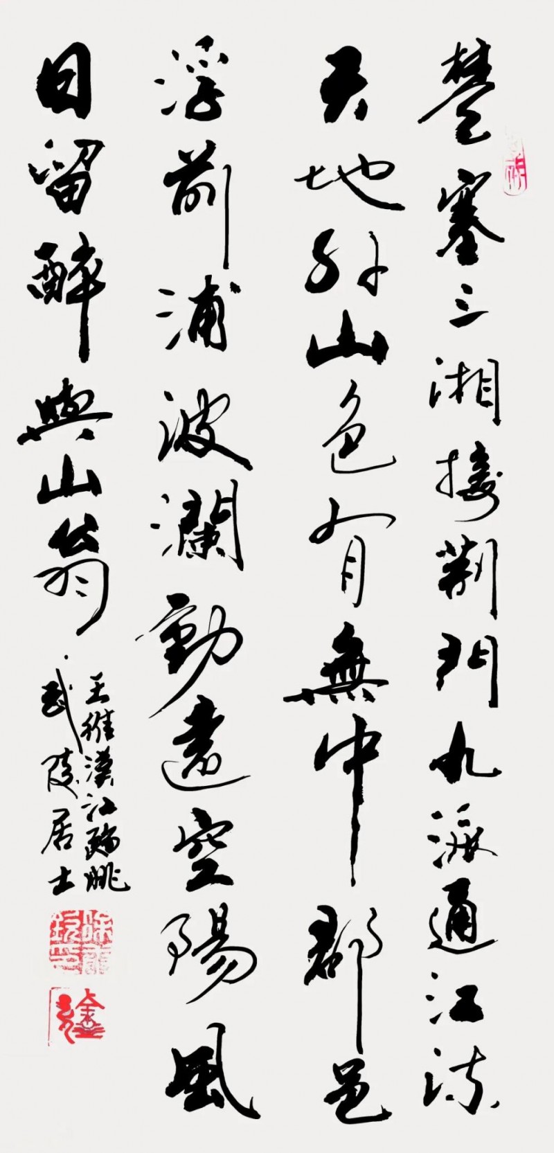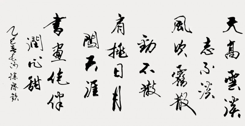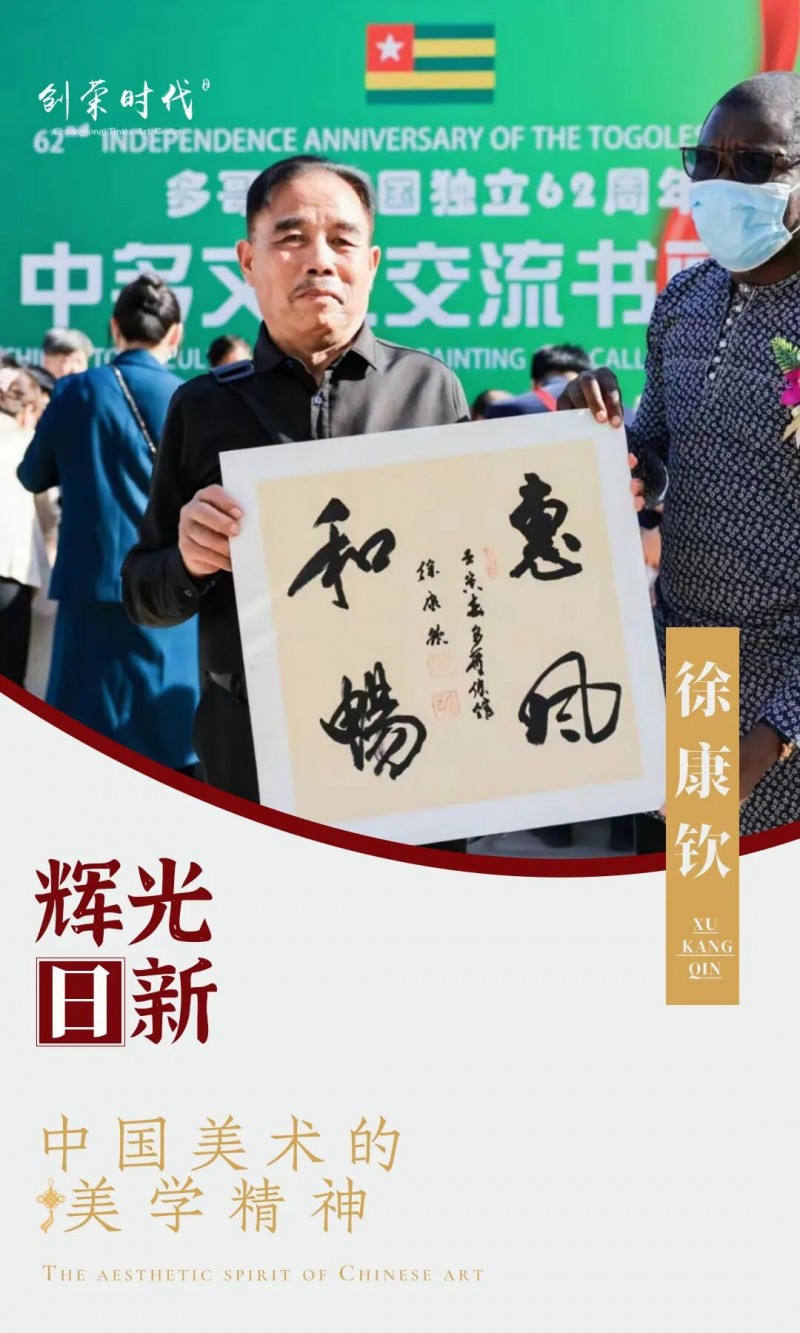 此时,我茅塞顿开:原来徐康欽老师的书法乃妥妥的童子功!我还了解到,年逾古稀的他,人生阅历极其丰富。早年,曾是一名中专学校的校长及语文老师。历经14年的教师生涯后,于1992年正式停薪留职下海,做起了企业高管。1996年至1990年独闯东南亚,14年里,历任《蓝盾集团》等3家跨国公司CE0和执行总裁。无论走到哪里,研习书法均是他每日的必修课。更难能可贵的是,徐老师永远走在不断学习的路上,古稀之年还师承著名水墨画大师-金大建老师学习国画,在书法创作中注入了“追求神似和意境”的绘画艺术元素,使书法作品更具画面感和气韵感。