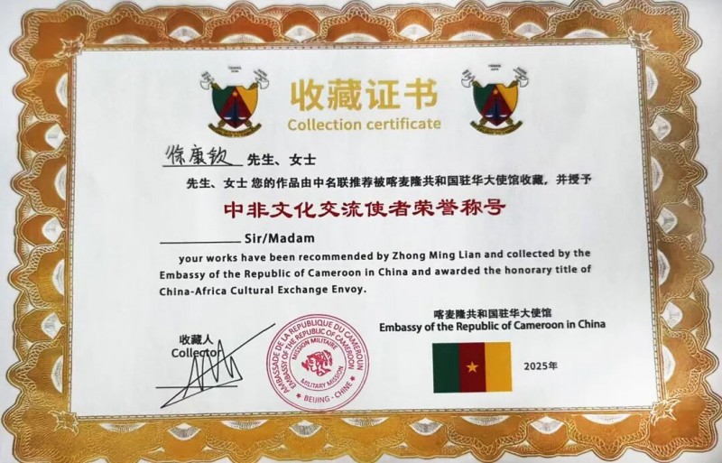 2025年3月,作品被喀麦隆驻华大使馆高价收藏;