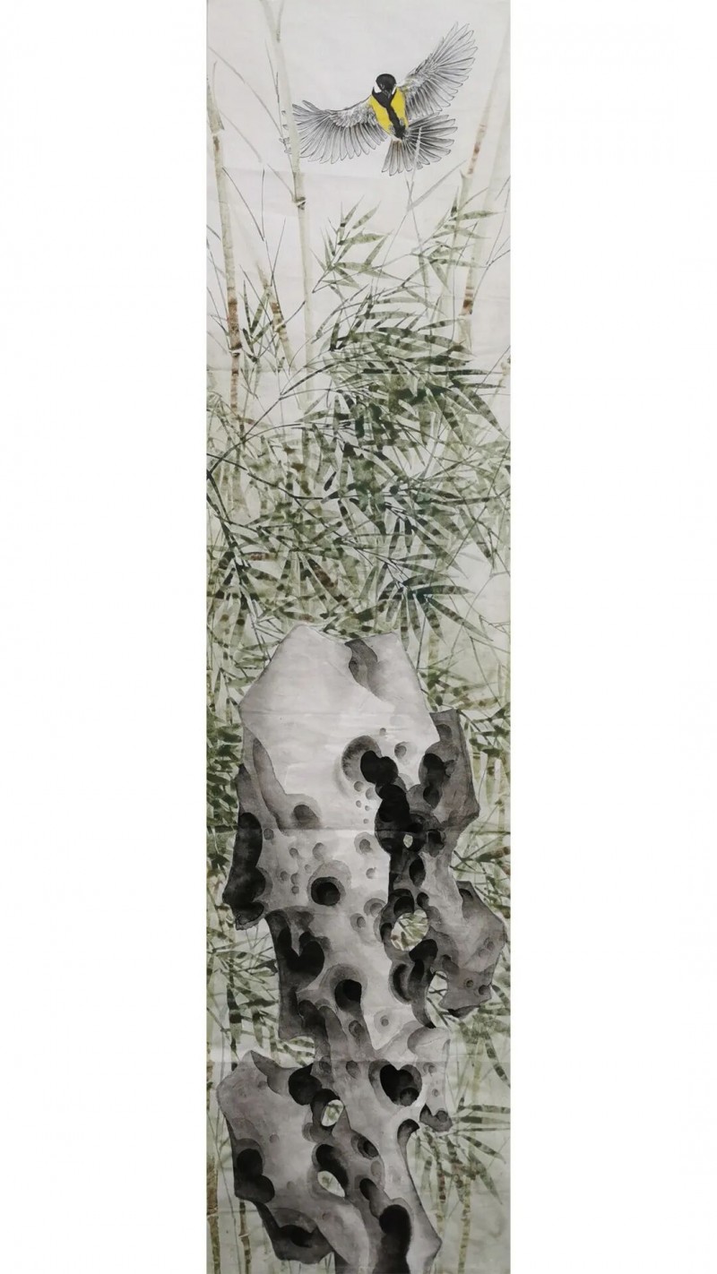 大自然总是以万种风韵呈现给人们,有感于大自然的造化,我通过各种形式来抒发感情,把花鸟、山水、树林与动物有机地融合在一起,使花卉借助山水园林的环境、气氛来拓展画面的境界,借助山水的满构图的艺术语言来体现花鸟画想表达的某种情感。随着自己创作视野的开阔,综合古人的各种艺术观念,风格交汇,使整个作品的面貌向着自己的要求不断完善。当看到自然中能触动自己心灵的画面时,就会迁想妙得,缘物寄情,才能真正表达出生活中的“情”和自然中的“美”。