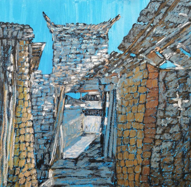 对于在创作过程中构图的运用和构思是每个画家终生探讨的课题。对于画面中的“正空间”来讲,“负空间”的作用甚至比其更重要。“负空间”在我的作品中更加具有形式感和统一的构成。往往对我的作品构图中的满幅“正空间”来说,“负空间”就尤其重要了。在创作过程中,线条与空间的相互关系使我更加注重相互的空间处理。整个画面的色彩运用,线条紧密处与空隙处之间的关系运用得法,就会使画面更加错落有致,使创意的形式感更强。