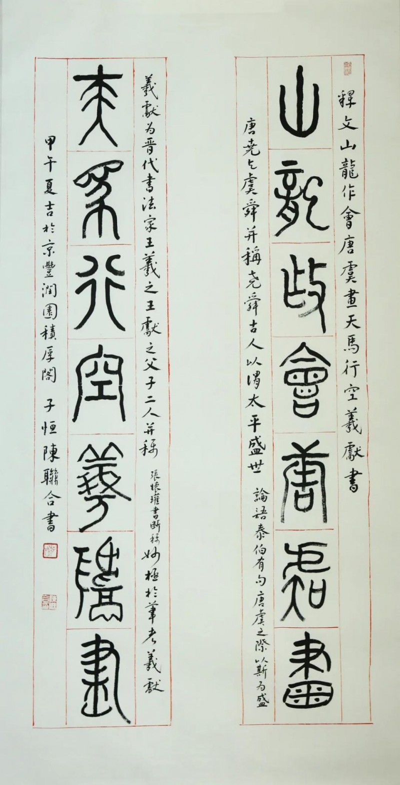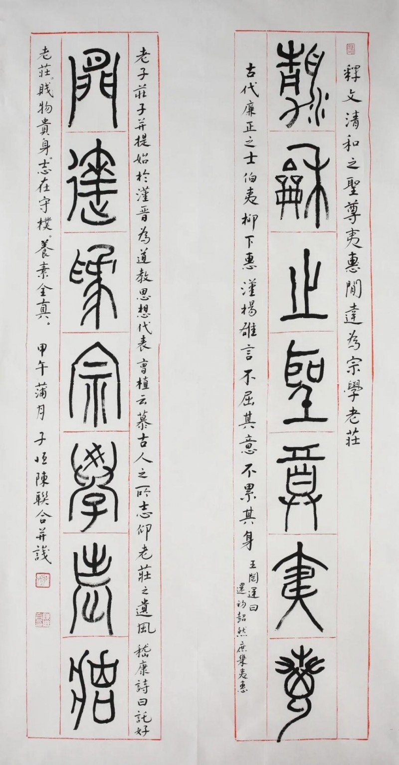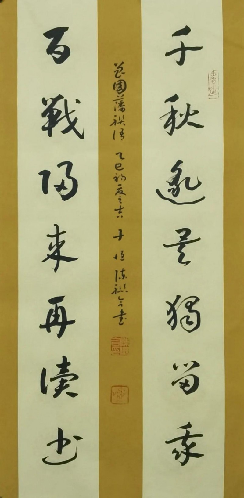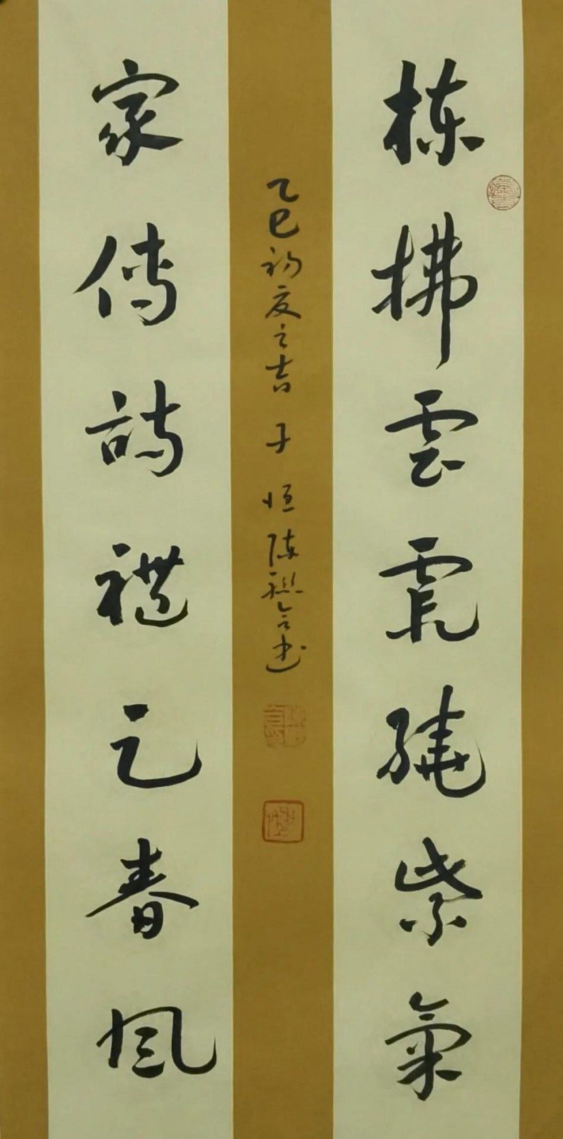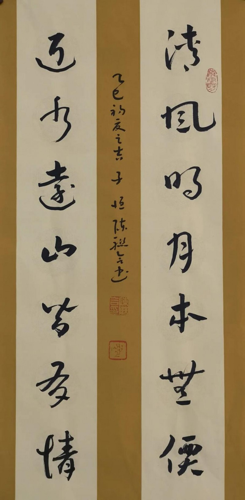 陈联合的艺术成就,不仅在于书法本身的精湛技艺,更在于他实现了书法、楹联、诗词的完美融合,构建起多元共生的艺术体系。作为中国楹联学会名誉副会长、楹联书法培训中心导师,他深谙楹联与书法的内在关联,将楹联的文学性与书法的视觉性有机结合,创作出大量优秀的楹联书法作品。楹联讲究对仗工整、意境深远,书法讲究笔墨生动、气韵贯通,两者在他的作品中相互成就——楹联为书法赋予了深厚的文化内涵,书法为楹联增添了鲜活的艺术生命力。