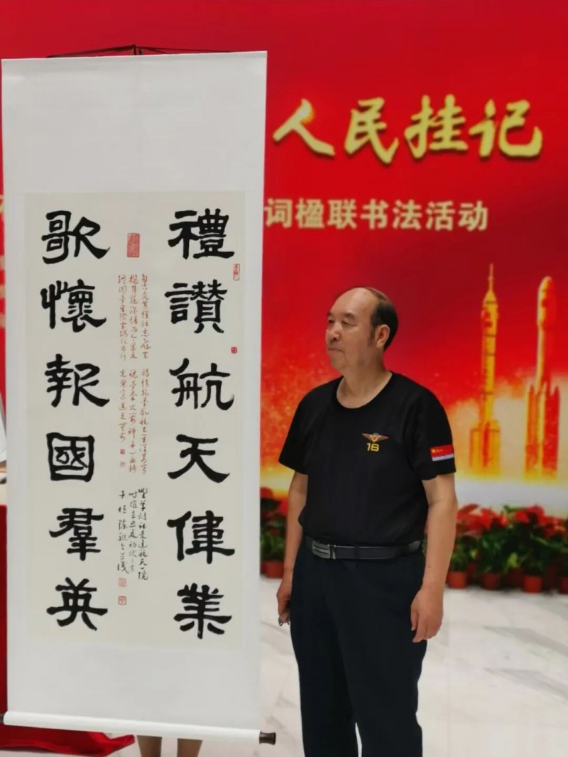 作为海军电视中心原主任,他的艺术创作还暗含着海洋文化的开阔与包容。笔墨间既有山川的雄奇,又有江海的浩瀚,形成了“刚中带柔、雄而不霸”的独特风格。这种风格的形成,既是对传统书法美学的传承,也是对军旅生活的艺术诠释,更是他个人精神境界的真实写照。在全军书法展中担任诗文监审,更体现了军内外艺术界对他书法造诣与文学修养的双重认可,他以笔墨为媒介,书写军旅情怀,弘扬强军精神,让书法艺术成为军旅文化的重要载体。