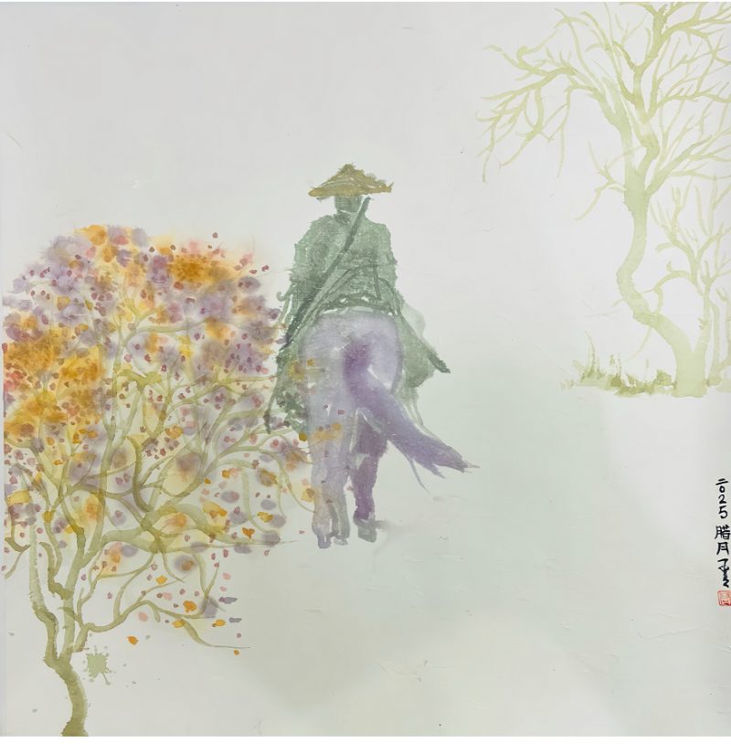艺术之路上,吕子青尤重从自然中汲取灵感。2016年,他于乡间创立“青青梨舍”,寄情田园体悟本真;2018年临江辟建“听海阁”工作室,于江风涛声里研磨笔墨。厚积薄发之下,其作品《地涌金莲》于2025年入选中国美协艺委会“雨花满天——2025青年写意画作品展览”并被官方收藏.2026年其作品参选江苏省“山水浦口 美丽新区”写生展获奖.2026年入选第四届小幅水彩画展.