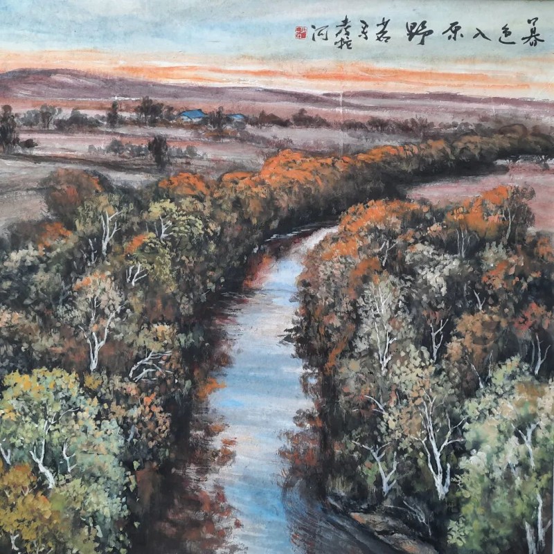 2017年于夏威夷举办的国际书画大赛中,作品《泽国暮霭》获金百合奖。