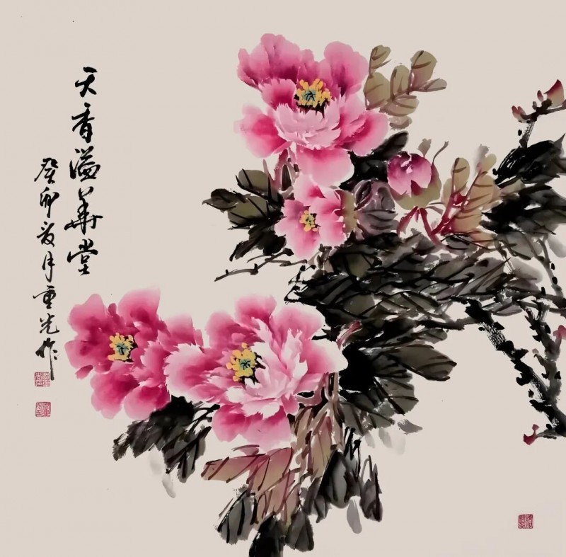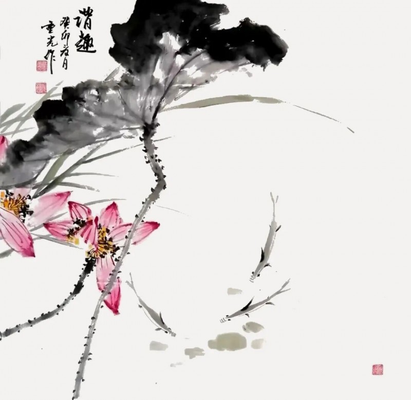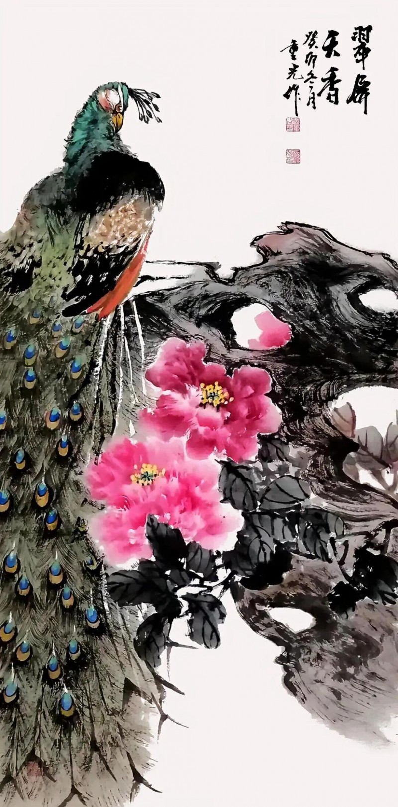 画为媒,当我们都离开这片山河,当我俩分别回到北京和宜兴的时候,当我俩过了甲子之后,我在上海的一个笔会后驱车赶赴宜兴,参加一个荒友的画展。沈重光的名字闯入我的脑海,沈重光的画作映入了我的眼帘…。几十幅中国画让我听到和嗅到了鸟语花香,让我看到了太湖畔上的色彩斑斓,闻到江南秀色扑面而来的春风里,竟然传来一股股北大荒金达莱的香甜。沈重光的花鸟神韵兼容了北疆南国,他用中国画重现了他的人生路。诗言志画言情,他用独立的构思和内心溢出的色彩,向受众讲述着他的人生故事。站在这些荡人血脉的画面前,我和他成了朋友,相识恨晚。