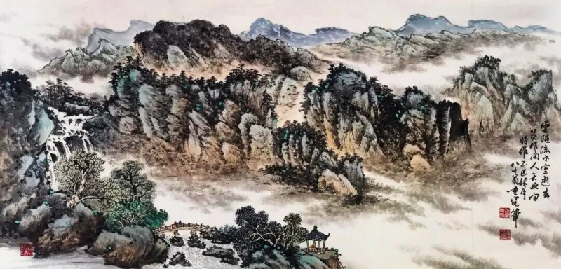沈重光的中国画,就如同去年冬天黑龙江哈尔滨的冰雪大世界,让我为其感到震撼和兴奋,这是北大荒黑土地里应该有的一种收获。这种“尔滨”现象的出现,就和沈重光的画作一样,是一种大荒沃野厚重的积淀与灵性破茧的升腾,是一种心和血在黑土地里滋养的集中爆发与勃起。这一点我並不觉得奇怪,因为在沈重光的身上,在他的内心世界里,在他国画山水与花鸟的水墨色彩中…,早以蕴育了文学与艺术的原生本性,“尔滨”现象的出现,就是响当当的必然。