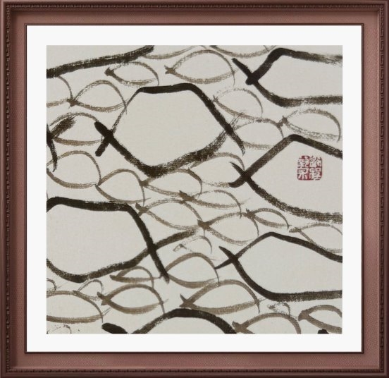 他的绘画系列作品,同样令人叹为观止。他将印象派的意向与中国绘画的传统元素巧妙结合,创造出一种全新的艺术风格。这种融合不仅丰富了画面的层次感与意蕴感,更让观者在欣赏时能感受到一种跨越时空的文化对话。在他的画作中,汉字不再是简单的符号,而是成为构图的重要元素,经过不断的排列组合,形成姿态万千的形式美。这种变化多端却又和谐统一的美感,正是他对“阴阳不测谓之神”这一传统哲学理念的生动实践,让观者在自由挥墨的背后,感受到一种对人生智慧的深刻感悟。