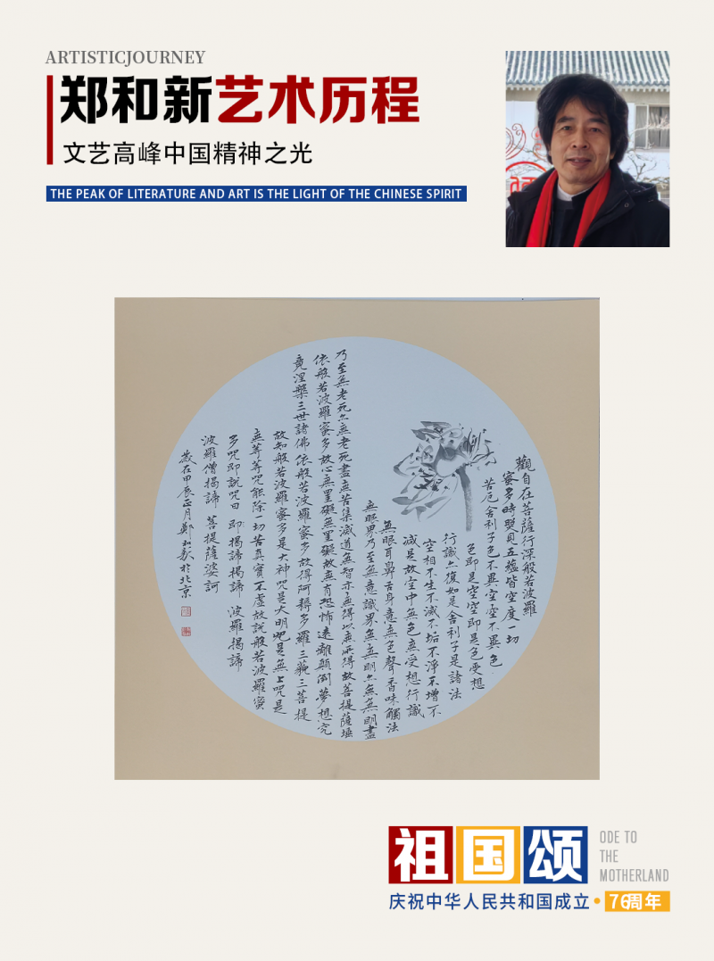 近年来对“般若波罗密多心经”创作颇有研究,天津人民美术出版社出版了《郑和新心境作品集》,百幅作品用不同书体不同形式创作,在业内引起了很大反响。出版社社长李毅峰还专门从名家视角出发对郑和新书法进行了高度评价。