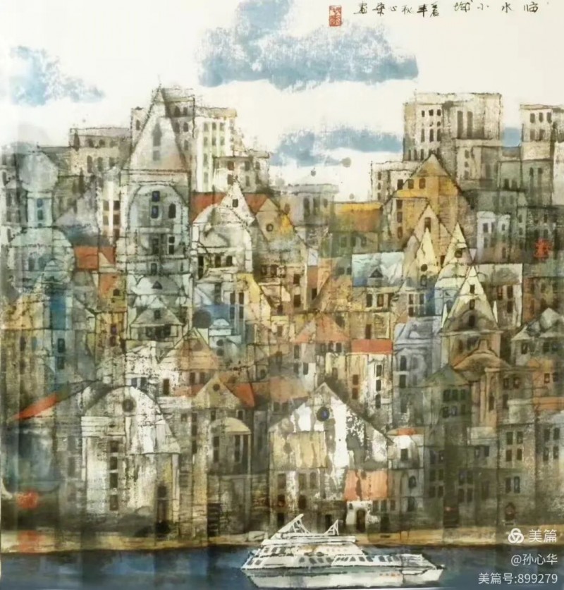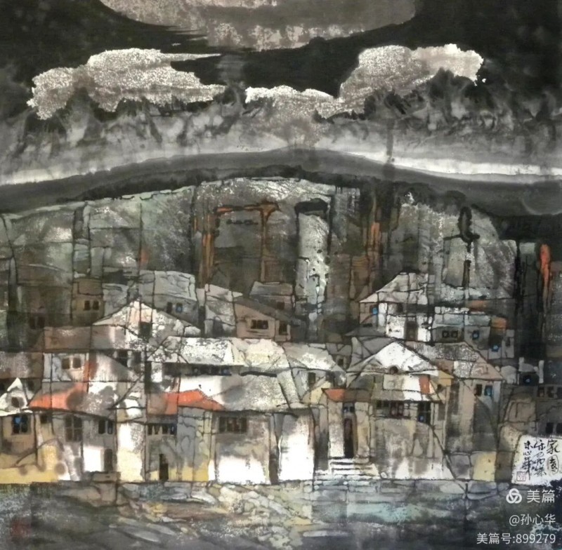 看孙心华同学新近的画作,很耐人寻味。说它是中国画,因为他使用宣纸,以水墨为主作画,且将诗、跋、书、印有机地组合在画面上,相互补充,相互辉映,成为一个艺术整体,充分显现了传统中国画的民族艺术特色。然而他画的却又不是传统意义上的中国画。