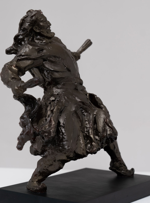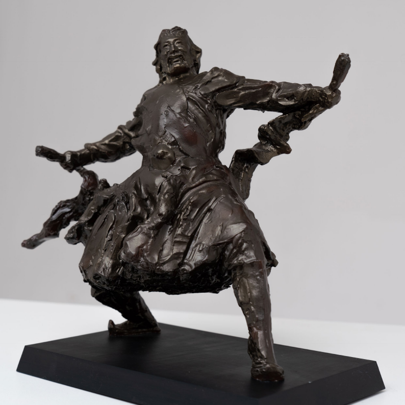 作品以蒙古族的筷子舞为创作蓝本,通过瞬间的动态捕捉,将这种具有强烈民族特色的舞蹈永久性地定格。放松而奔放的动态形象,传递出草原文化的独特魅力和深远内涵。雕塑中的舞者身着传统服饰,以其粗犷的面孔和挥舞的筷子,展现出蒙古族人民既豪放又细腻的性格特点。他的姿态强劲有力,仿佛正随着悠扬的马头琴声和草原之风翩翩起舞,充满了自由和激情的气息。