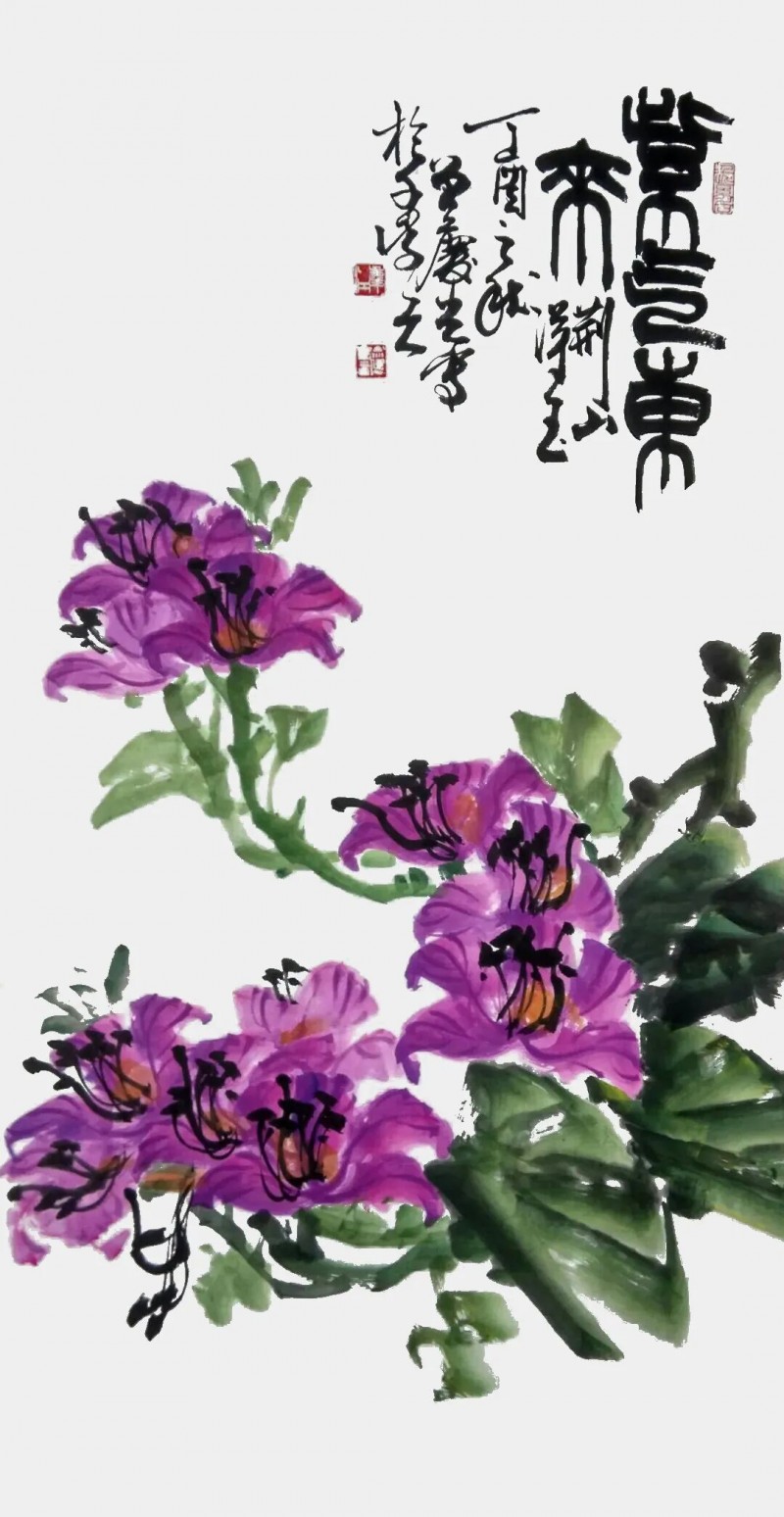 于是,在曾庆江的“千紫居”世界里,我们看到了诗、书、画、印的完满融通。观其画,可品其书法的笔意;读其题画诗,可悟其画面的未尽之思;赏其整体,又可感受到一枚精心镌刻的姓名章或闲章所盖下的、如乐曲终章般的点睛之韵。这种融通,非技艺的简单叠加,而是其人格修养、文化积淀与艺术才情在“以德领艺”理念下的自然流露,是传统文人理想中“艺如其人”的生动体现。