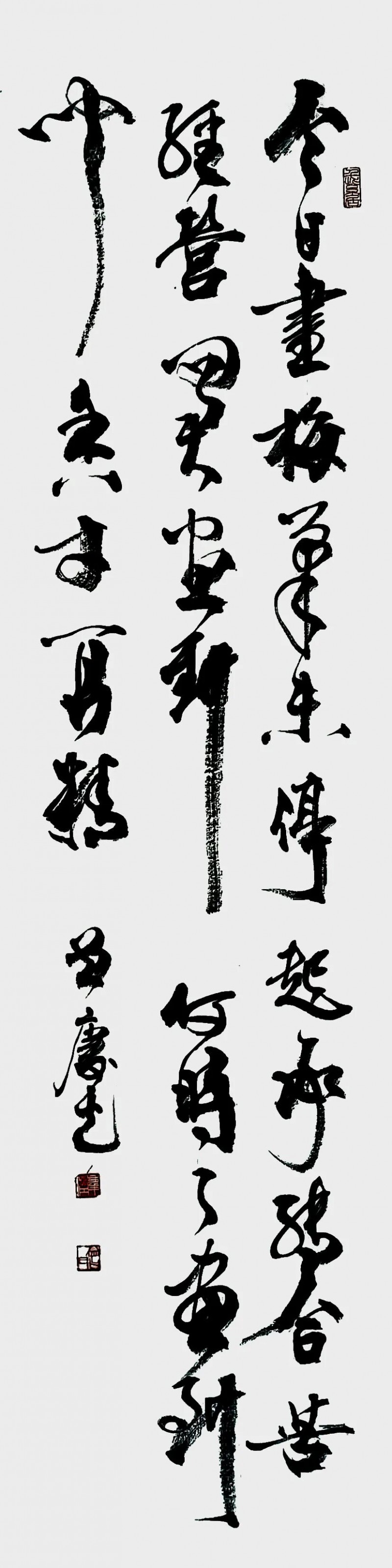 本人从小酷爱书画,早年从师学习国画(齐派花鸟画为主),得知国画要以书法国学为基础,以书入画,遂勤练笔墨技法;深入传统,以哲理布局。书法以清篆入门,继而大篆秦篆,又隶楷行均习。题款以诗词形式立意命题;以德领画,诗书画融为一体,丰富艺术内含,还需师法自然,源于生活而高于生活。用新的笔墨表现新的社会,服务于民众,此乃本人之思!本人之举也!