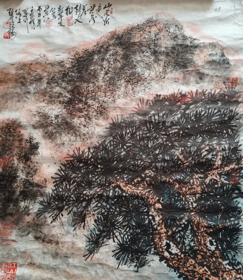 艺术的高度,始于传承的厚度。潘永明自幼便结缘书画,师从海上著名画家胡成荣、胡振郎,打下了扎实的传统功底。他深知,中国画的生命力在于 “师古而不泥古”,数十年来,他以百折不回的毅力,潜心钻研黄宾虹的浑厚华滋、李可染的沉雄博大、傅抱石的磅礴气韵,在反复揣摩中吸收养分,更在实践探索中独辟蹊径,创新出极具辨识度的 “游丝皴” 技法。