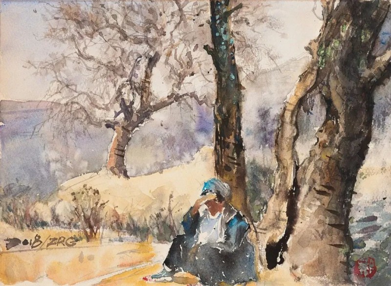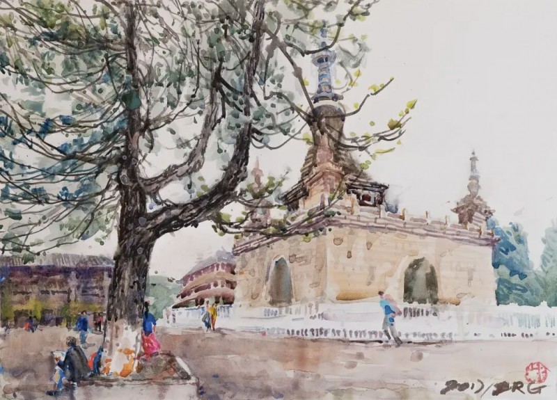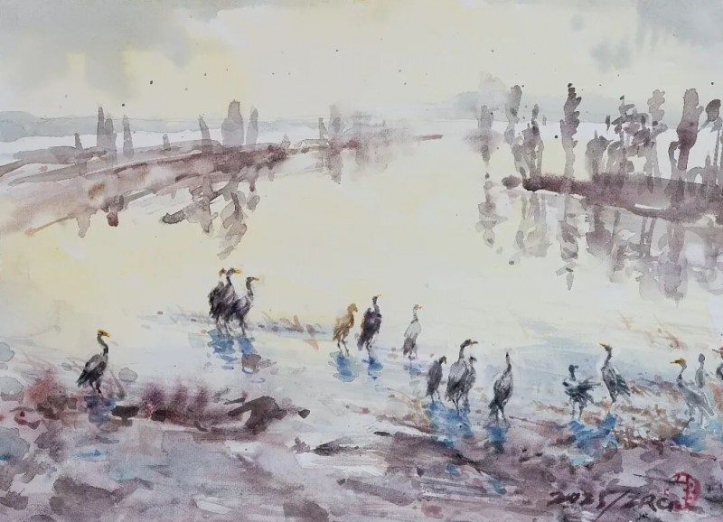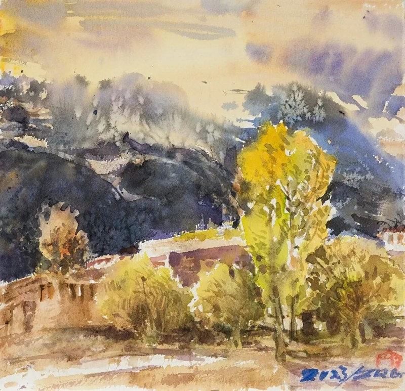 苍茫夕阳 | 纸本水彩 | 38×54cm | 2019 年