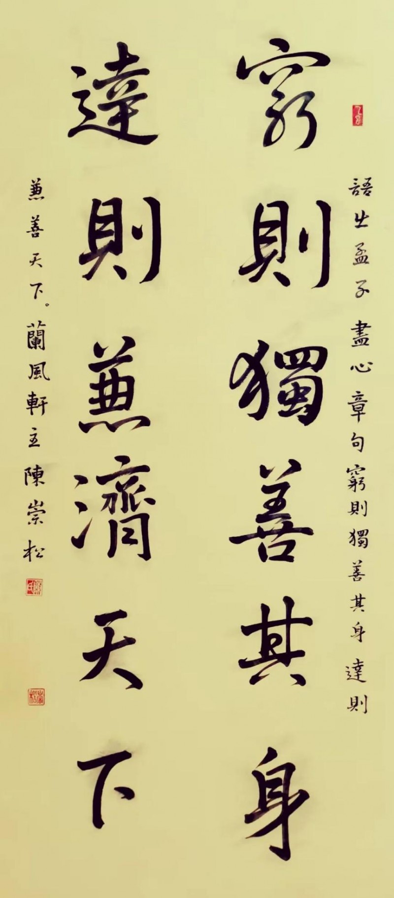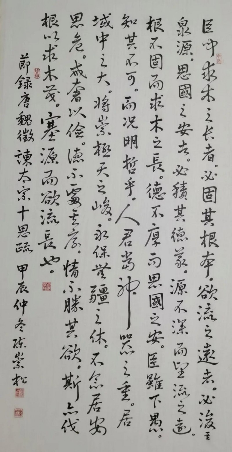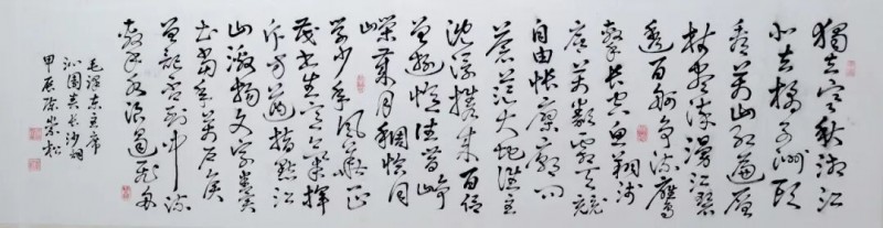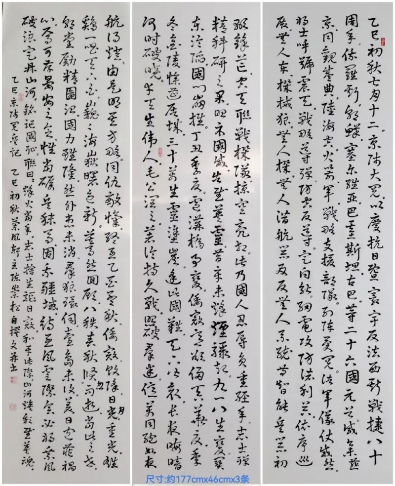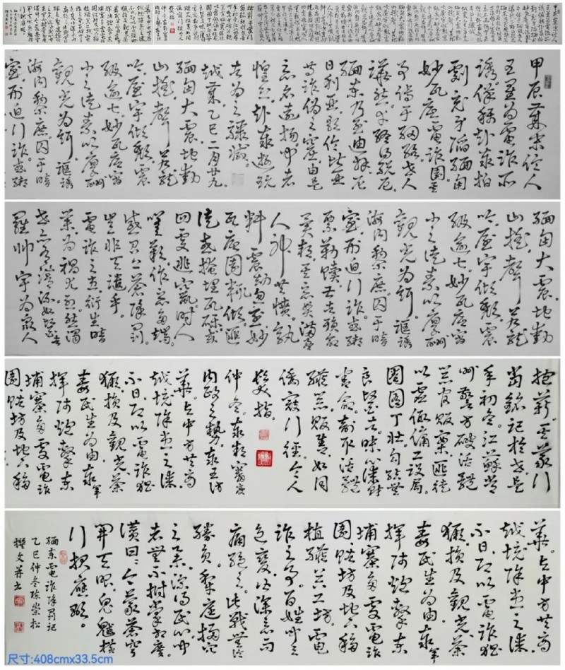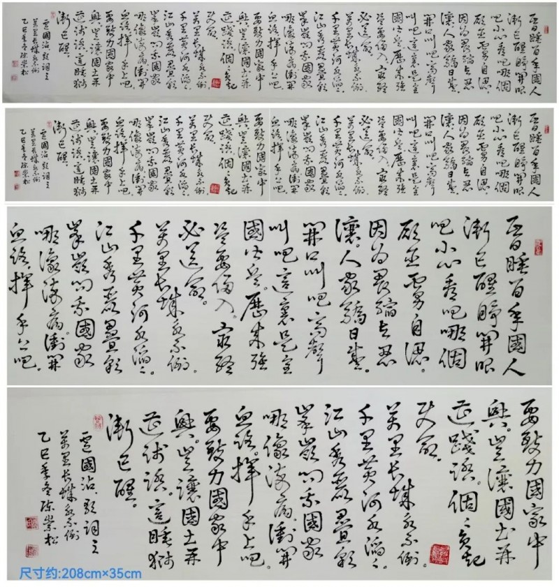 此展肇于丙申,张子再之创建雅集,迄今已四届矣。海内墨客汇于一群,共襄盛举。应征参展者,上至耄耋,下及垂髫,无论名气焉。迩来书道式微,予遂息心挥毫,唯公益书展与同好相邀,偶作应制。感此展弘扬传统、激浊扬清,遂呈拙作以助清芬,群中诸友亦戮力同心。