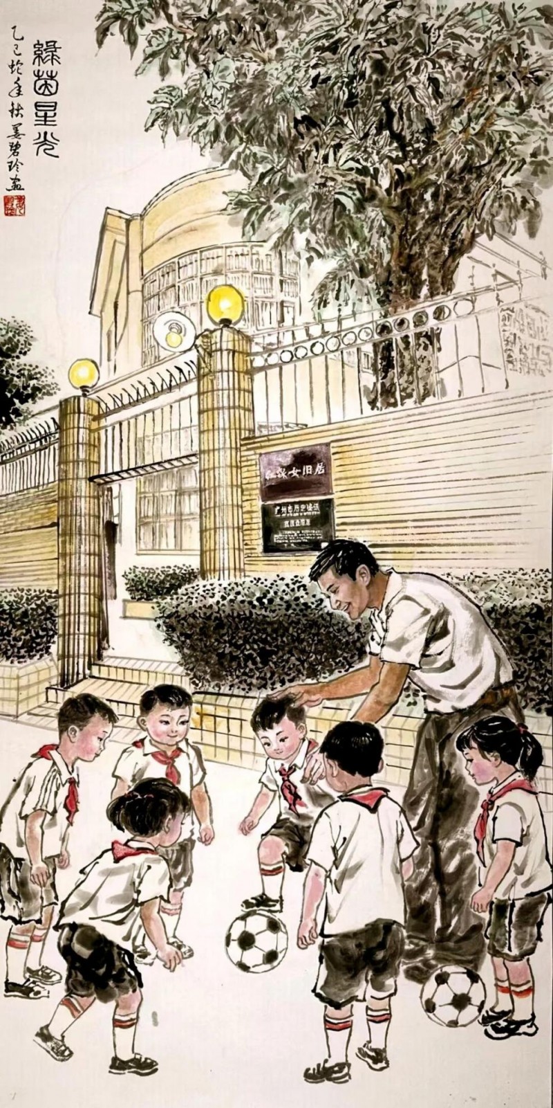 《绿茵星光》四尺整纸姜碧玲原创于乙己年秋