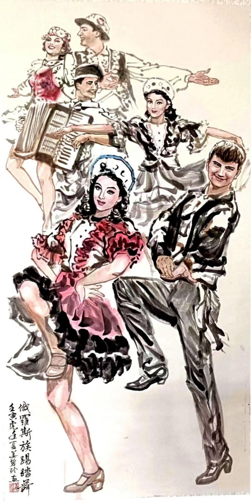 《俄罗斯族踢踏舞》(四尺整纸)姜碧玲原创于壬寅年春