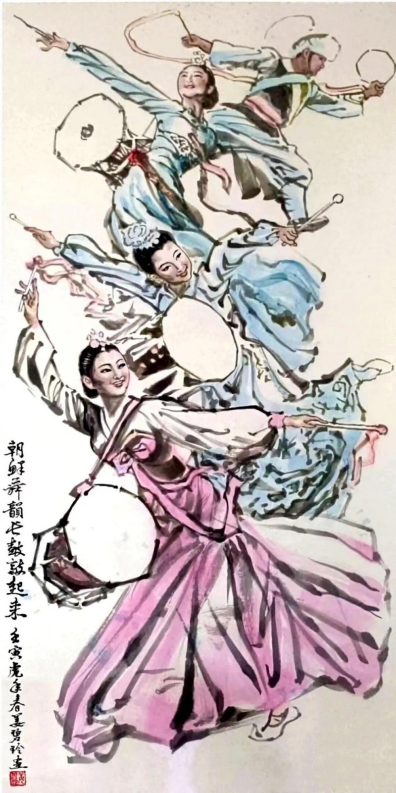 《朝鲜舞韵长鼓敲起来》(四尺整纸)姜碧玲原创于壬寅年夏