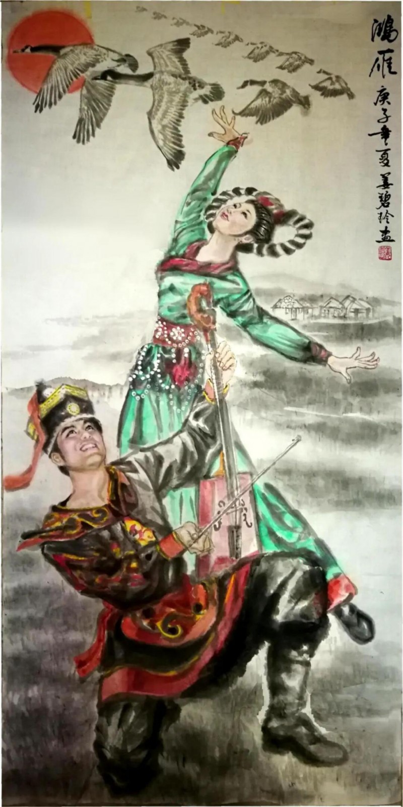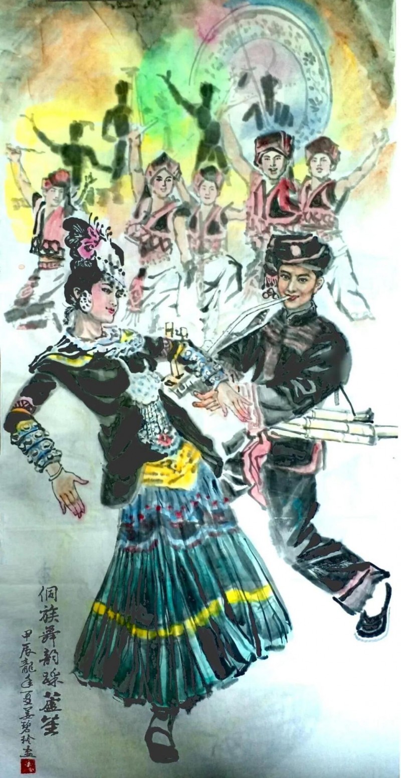 《侗族舞韵踩芦笙》四尺整纸 姜碧玲原创于甲辰龙年夏.