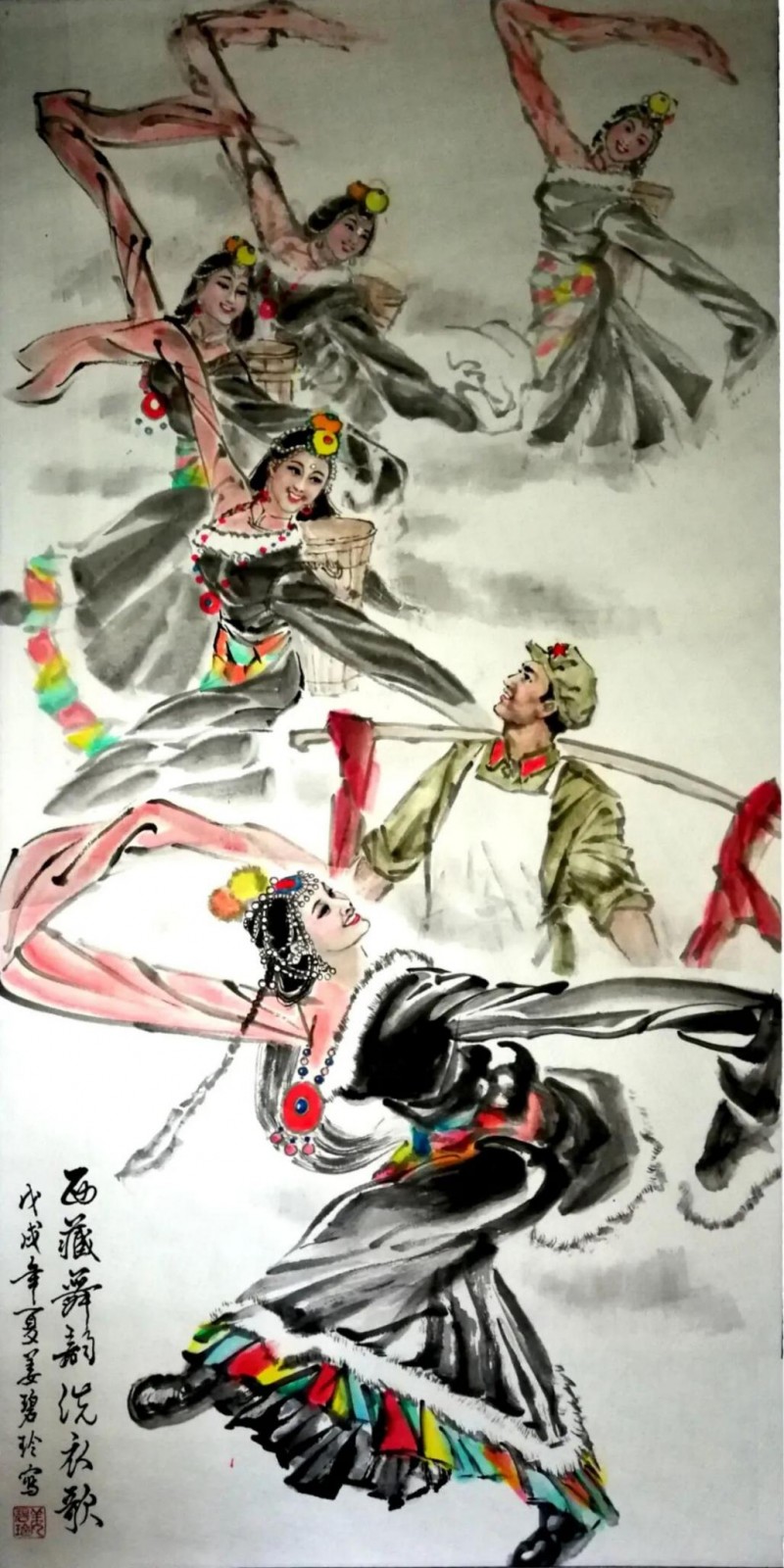 《西藏舞韵洗衣歌》戊戌年夏姜碧玲画