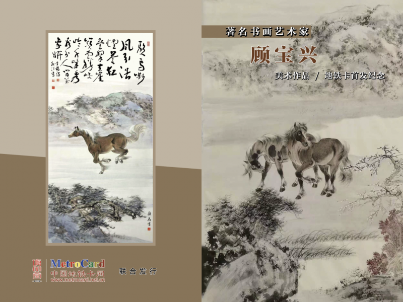 尤可一提的是,顾马兄藏有一卷手卷《百骏图》,此卷之作堪称耗时弥久,停停画画、画画停停间,竟耗去十六载光阴。长卷自开篇至收尾,清晰可循其技法演进的轨迹——初时落笔尚偏写实,线条精准、形神兼备,尽显对古贤技法的研磨与承袭;随创作深入,笔墨渐趋松散、淡雅,褪去刻意雕琢之态,多了几分文人画的萧散空灵,恰与他书法中融入王宠意趣后的审美追求相契合。卷中群马或奔或憩、或嬉或伫,既有唐韩幹之骨、宋李公麟之韵,亦融元明诸家之神,线条流转如行云流水,设色清雅不掩风骨,将骏马的俊逸与文人的情怀交织相融。值此蛇年将尽、马年将至之际,展卷品读,更觉笔底神骏皆含吉庆之意,而十六载光阴沉淀的匠心与审美蜕变,更让这卷画作成为他雅意人生的生动注脚。更巧的是,顾马兄近年亦在擘画一卷新的《百骏图》,特意决意从蛇年起笔,跨岁至马年落成,以笔墨镌刻岁时流转,续写对神骏题材的深情。与此同时,上海地铁卡网亦为他特制了一款纪念卡,卡面绘有一匹侧影奔马,身形舒展,虽呈狂奔之态,却自露从容轻逸之姿,拟于马年新春来临之际正式发行,让这份笔墨雅意走进市井日常。也因此,他的画马之作素来备受偏爱,见爱者念念在兹相求,有素不相识而宝爱其作,终成知交者亦不少。