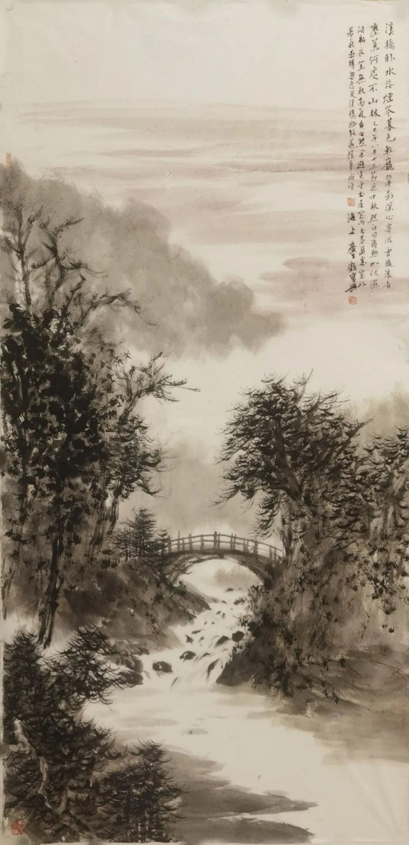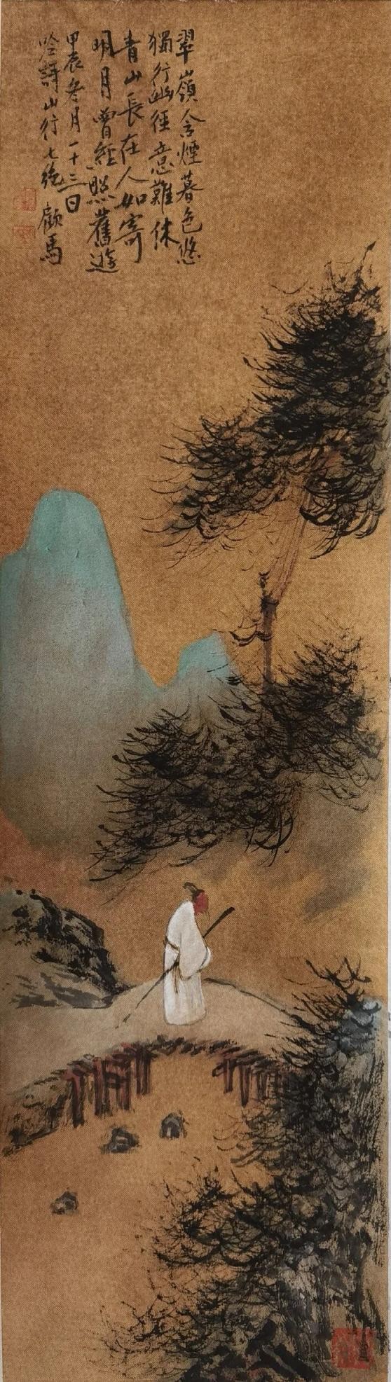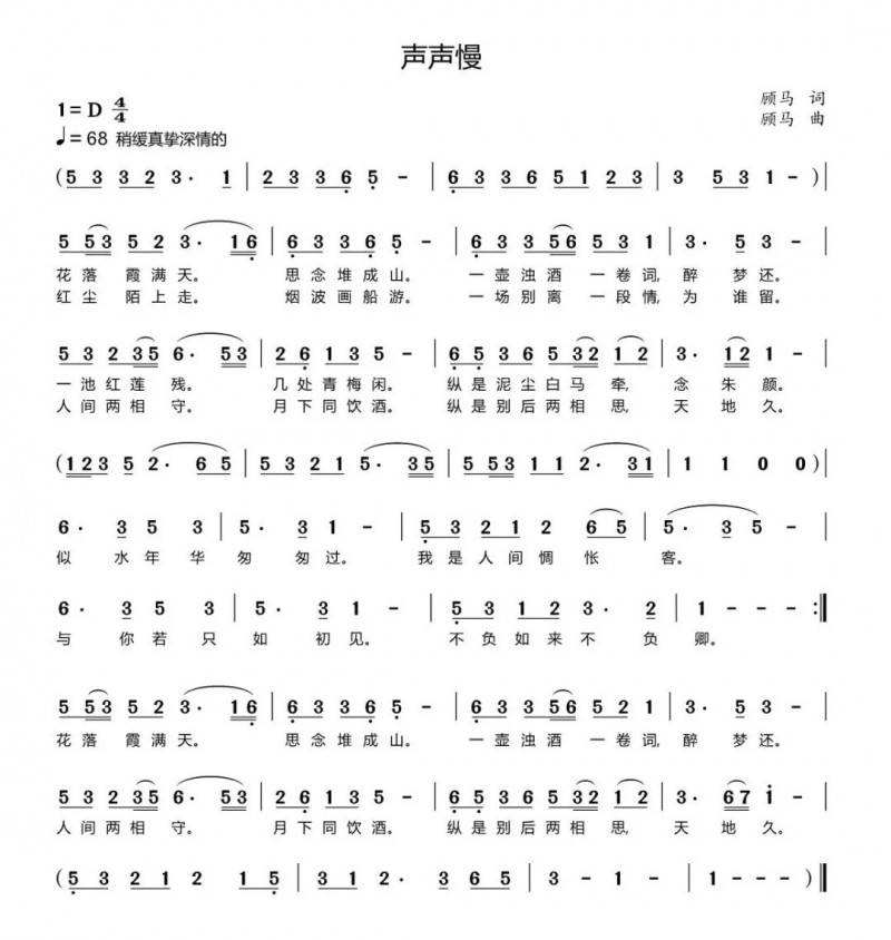 虽然说顾马在海上书画界已有自己的名堂,但知晓他其实也是上世纪八九十年代的文青出身,能写新诗,写散文,作旧体诗;出入媒体,下海经营广告、文化策划事迹的并不多。而他的雅好亦不止书画一端,年轻时曾玩学小提琴,指尖流转过西洋乐的韵律,这份对音律的感知,日后也悄然融入笔墨与文思之中。如今虽不常抚琴,却爱在画画、读书、品茗的闲暇之余,作词谱曲,尤嗜古风,笔底字句皆染古意,曲中旋律尽含清韵。他自填诗词,再谱成曲,如《半城月万里云》《一任江山过眼秋》,后者“松影横斜水自流,棹舟唯见月光幽。无言独觉浮云客,一任江山过眼秋”之句,清冷空灵,尽得文人疏放之态;更有《声声慢》一曲,以自撰词作打底,字句凝含清愁淡绪,暗合词牌本身的温婉调性,旋律则循字入韵,不急不缓,如诉如吟,将古风词的韵律之美与文人的细腻心境交织,余韵绵长。更有《雨中都城》一曲,意境悠远空旷,以音律勾勒出俯瞰上海的浩渺之景——凭高远眺,城池尽在眼底,天地一望无际,将都市的肌理藏于绵长曲调中,尽现苍茫深远之感。所以,叙说他在俗世日常里表现的风雅——他虽以善书画而载名声,然平日里他之所为的实质且表现出的精神,恐怕还只是情怀积盈的一介文人罢了。
