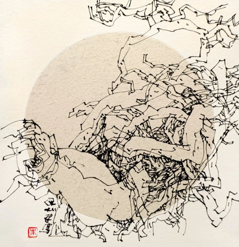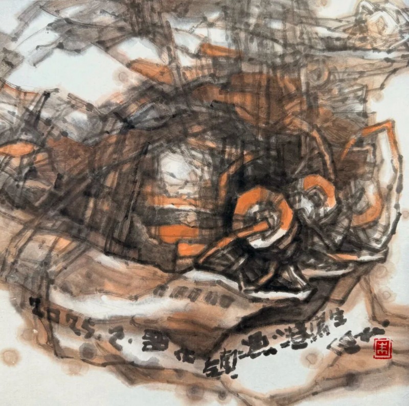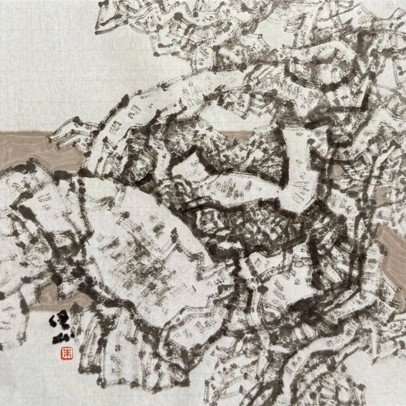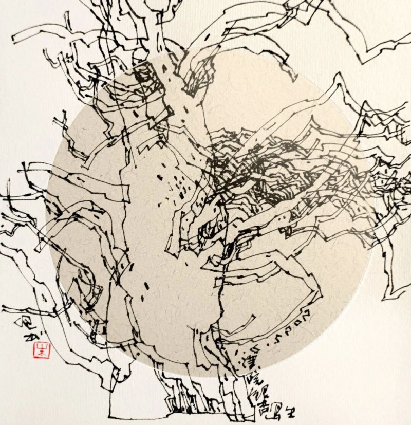 我,正在努力以我的愚拙之笔,真诚之笔,探索之笔,去记录、描写古木与舟楫,去阐述、演绎古木与舟楫蕴含的象征意义。其实,我以初心、真情创作的一幅幅古木舟楫水墨作品,似乎正是我的生命旅程中的映射与写照;每一帧不同形态、特质的独特图像,就是我曾经历与沉潜的生命的深度体验。