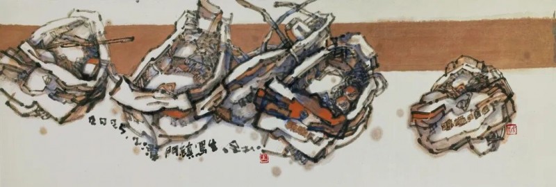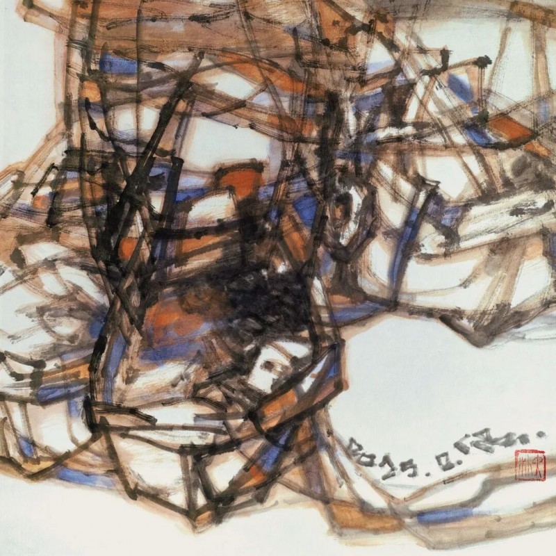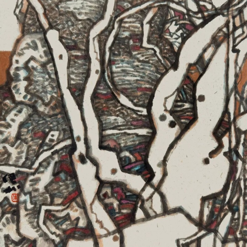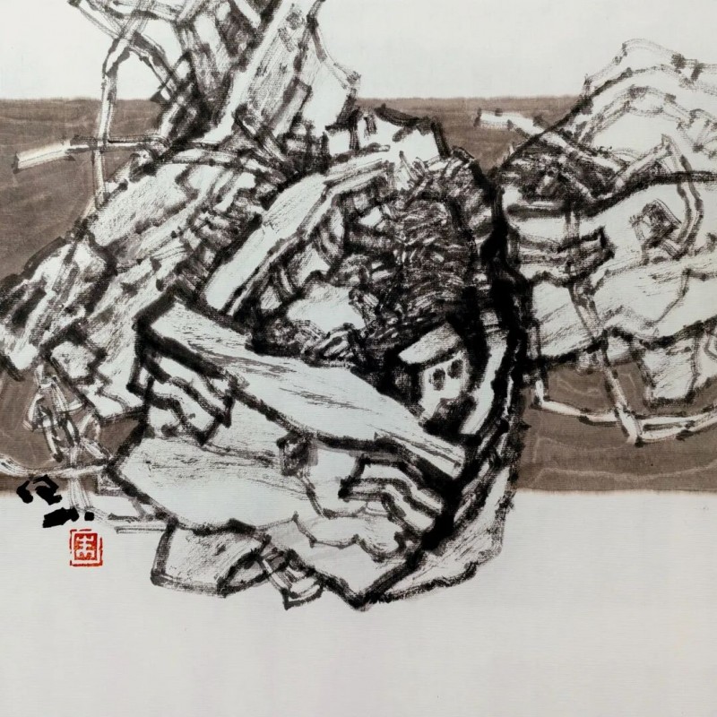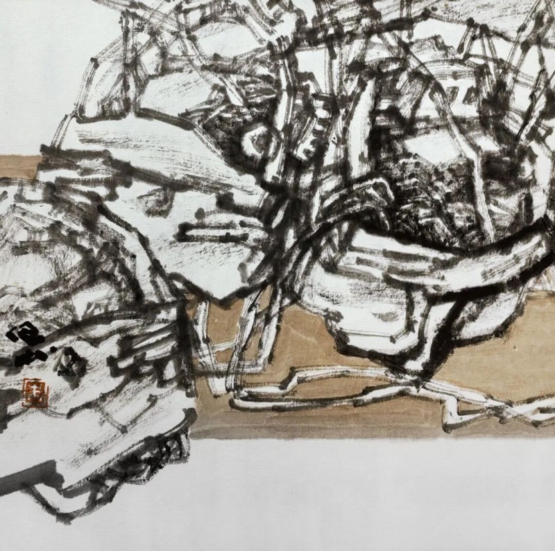 古木,象征的是生命坚韧生长、抵御磨砺的品格特质;舟楫,象征的是生命潜行修道、追寻自然的心灵境界。也就是说,古木,是"生命成长"的视觉形式符号;舟楫,是“生命修行”的视觉形式符号。也就是说,这就是近年来我创作《木·舟系列》的思考与理念。